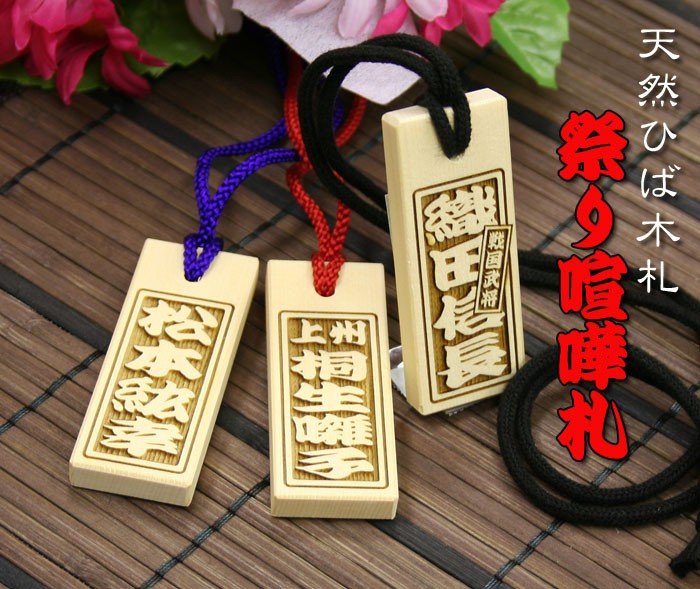 木札に好きなお名前や言葉を彫刻した喧嘩札(祭札)!