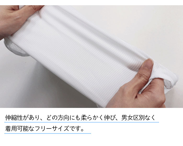 伸縮性があり、どの方向にも柔らかく伸び、男女区別なく着用可能です。
