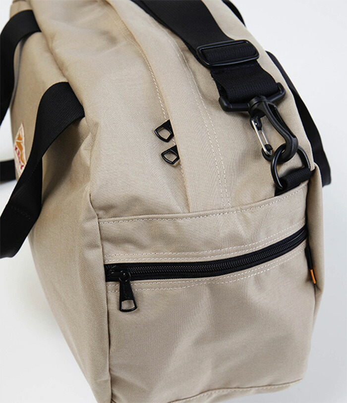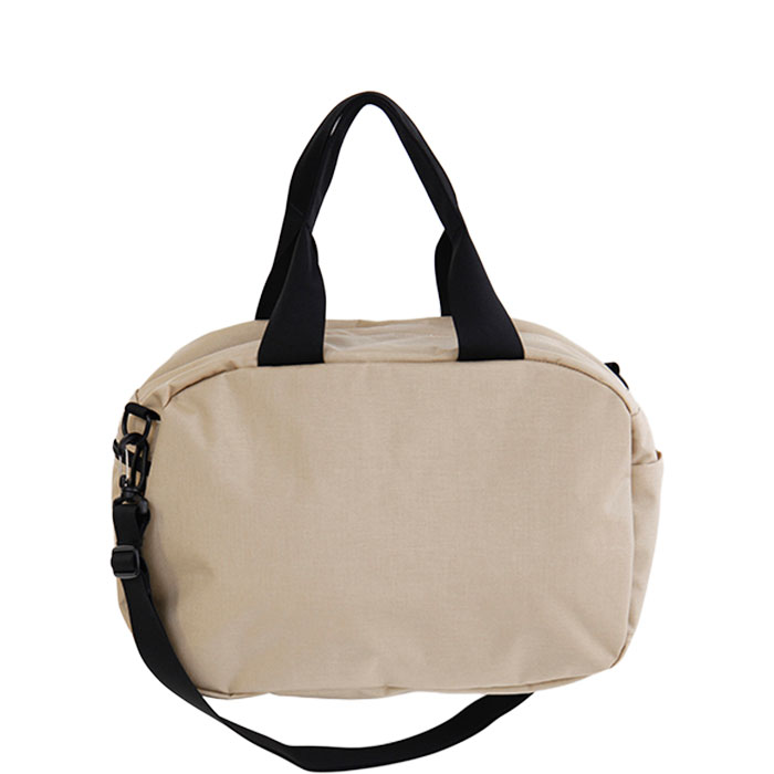 ありそうでなかった、コロッとした形がカワイイ小さなダッフルバッグ。 通勤通学や荷物が多い日のお出かけなどにピッタリです。 A4のクリアファイルも入るメイン収納にはファスナーポケットが1つ付いています。 外には両サイドにそれぞれファスナーポケットとスリーブが付いているので、サッと取り出したい物を入れておくのに便利です。 生地はインビスタ社製の500D(デニール)コーデュラナイロンを使用。 ナイロンは引き裂き強度・耐摩耗性に優れている生地で、ポリエステルに比べ柔らかい触り心地が特徴です。 また、ナイロンそのものの撥水性に加え、裏側にポリウレタンコーティングを施してあるので、完全にとは言えませんが水の侵入を防いでくれます。 収納にはコーデュラナイロンだけではなく、生地の裏が見えないように210Dポリエステルの裏地が付いて、肌触りがいいだけではなく、万が一PUコーティングが劣化しても使えるようになっています。 |