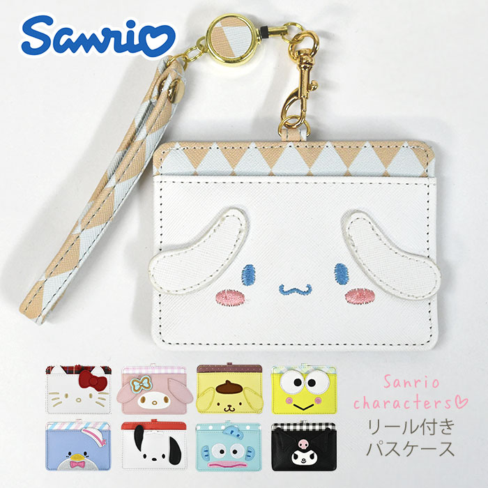 パスケース 子供 リール キティちゃん キティ マイメロディ ポムポムプリン シナモロール けろけろけろっぴ タキシードサム ポチャッコ ハンギョドン クロミ