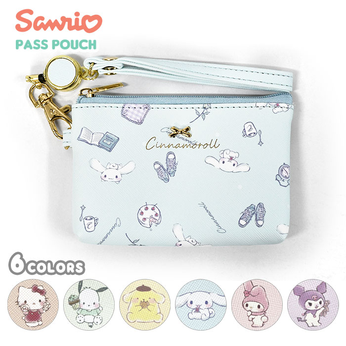 キティちゃん キティ ポチャッコ ポムポムプリン シナモロール マイメロディ クロミ グッズ パスケース 定期入れ 子供 こども キッズ 女の子 女子 リール付き