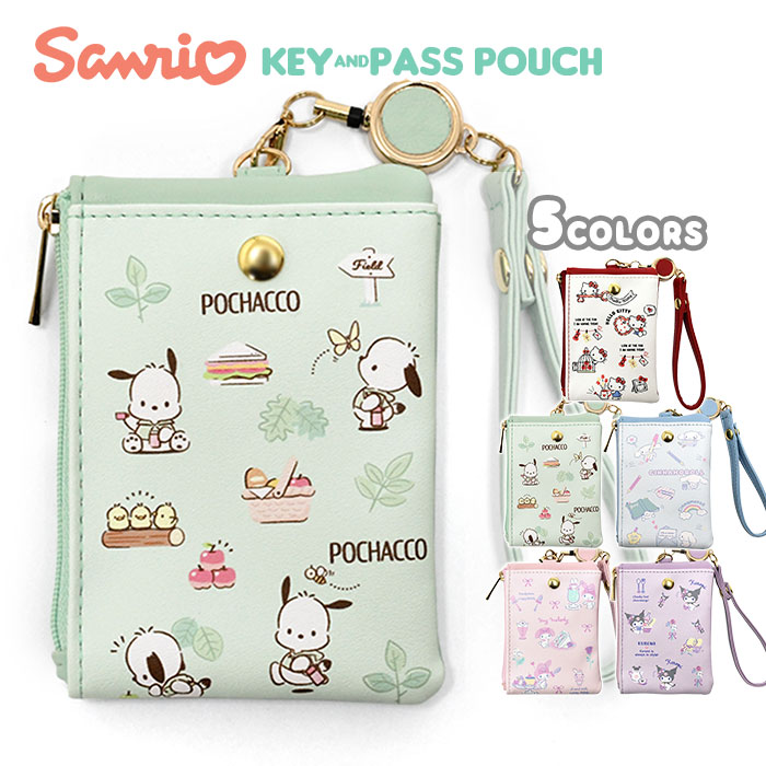 サンリオ キャラクターズ リール付き キー&パスポーチ /レディース 女性 女子 定期入れ パスケース パスポーチ カード入れ カードケース リール リール付きパスケース ストラップ ストラップ付き 小銭 小銭入れ 小銭入れ付き コインケース 小物入れ ポーチ キーケース キーリング 鍵 一体 一緒 可愛い かわいい おしゃれ オシャレ 大人 大人っぽい 大人可愛い カジュアル フェイクレザー 合成皮革 合皮 小物 雑貨 グッズ sanrio Hello Kitty ハローキティ キティちゃん キティ キティー ポチャッコ シナモロール シナモンロール シナモン マイメロディ マイメロ クロミ クロミちゃん キャラクター プレゼント レッド グリーン ブルー ピンク パープル パステル パステルカラー/