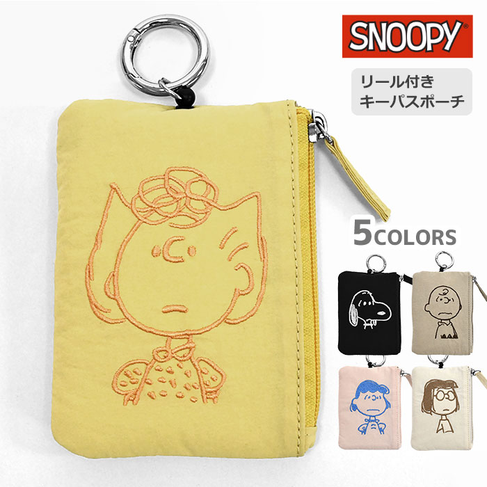 スヌーピー 刺繍 リール付き キーパスポーチ /レディース 女性 女子 メンズ 男性 男子 定期入れ パスケース パスポーチ icカードケース カード入れ カードケース リール リール付きパスケース カラビナ付き 小銭 小銭入れ 小銭入れ付き コインケース 小物入れ ポーチ ミニポーチ キーパスケース キーリング キーケース キーホルダー キーポーチ 鍵 一体 シンプル 可愛い かわいい おしゃれ オシャレ 通勤 通学 大人 向け 小学生 中学生 高校生 カジュアル ナイロン ギフト プレゼント 小物 雑貨 グッズ ピーナッツ PEANUTS SNOOPY スヌーピーグッズ ピーナッツフレンズ キャラクター チャーリーブラウン ルーシー サリー マーシー ブラック 黒 ベージュ ピンク イエロー オフホワイト/