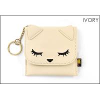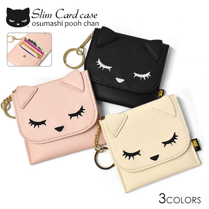 薄型 コンパクト カード入れ クレジットカードケース パスケース 定期入れ キーケース キーリング キーホルダー 1枚 2枚 3枚 4枚 合成皮革 合皮 PU レザー かわいい 可愛い おしゃれ オシャレ レディース 女の子 女子 小物 グッズ 猫グッズ 雑貨 黒猫 猫 ねこ ネコ キャラクター おすましプーちゃん アイボリー ピンク ブラック 黒