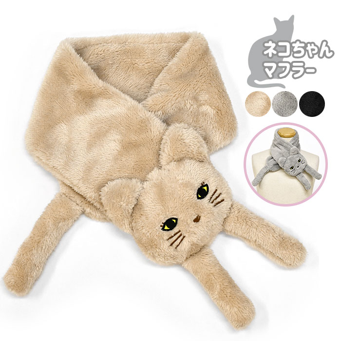 猫 ねこ ネコ マフラー ティペット 差し込み 差し込み式 おしゃれ キッズ 子供 子供用 子ども レディース フェイクファー ファー 猫グッズ グッズ プレゼント