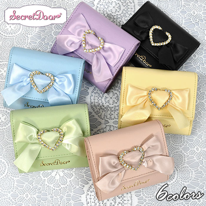ミニ財布 財布 レディース 小さめ 三つ折り財布 おしゃれ フェイクレザー ハート リボン ミニウォレット ガーリー 推し活 推し活グッズ 推し色 推しカラー