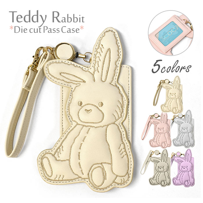 レディース 定期入れ ケース icカード ストラップ ストラップ付き 1枚 リール リール付きパスケース 合成皮革 合皮 革 レザー PU シンプル 可愛い かわいい おしゃれ オシャレ 小物 雑貨 グッズ 動物 アニマル ウサギ テディベア テディラビット パステル パステルカラー アイボリー ピンク