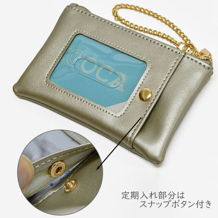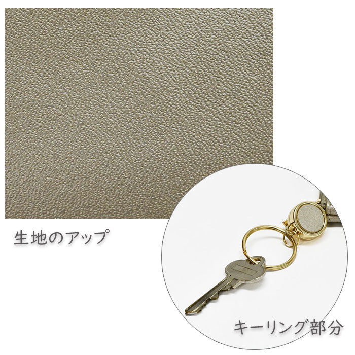 ■ 背面にパスケース、ポーチの内側には便利なキーリング付き。