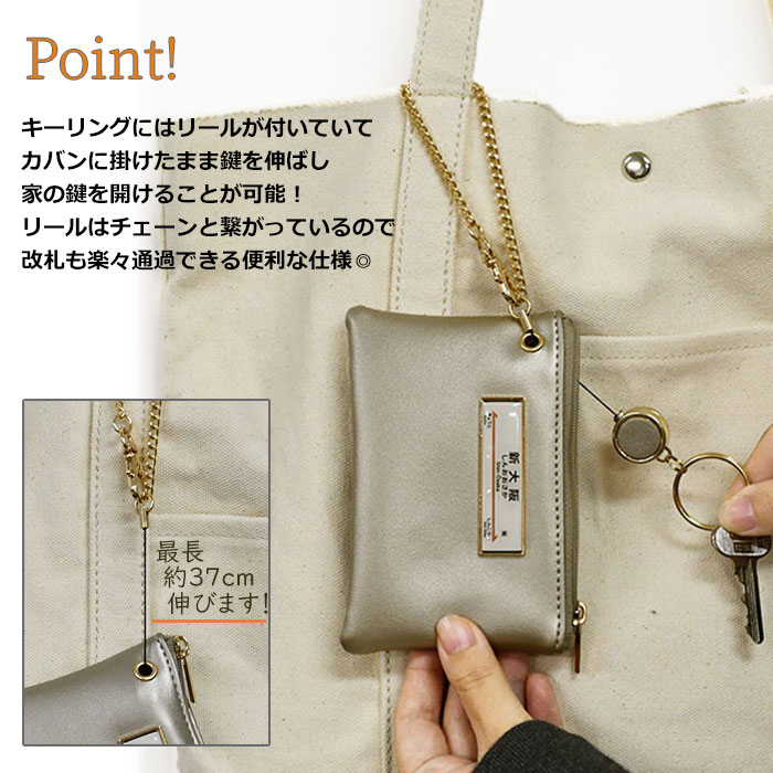 ■ キーリングにはリール(最長約37cm)が付いており、かばんに掛けたまま鍵を引っ張り出して使えます◎さらに、リールはチェーンに繋がっているので改札も楽々通過できる便利仕様!