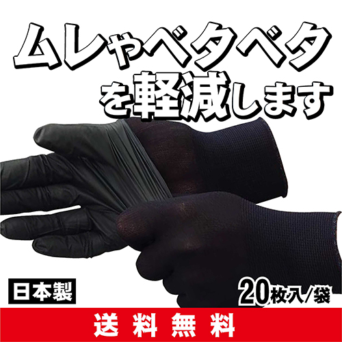 【送料無料】(ポスト投函) 手荒れ予防 黒いインナー手袋 下履き手袋 ムレ対策 手汗対策 ゴム手用極薄インナー手袋黒 20枚入り(左右兼用)SG-836