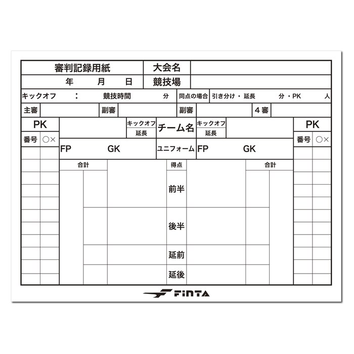 商品名 | フィンタ(FINTA) FT3516 サッカー フットサル レフェリー記録用紙10枚セット(ハーフサイズ) 25SS |