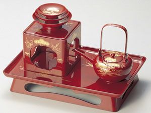 越前漆器12-15201 沈金松竹梅鶴亀 屠蘇器 朱