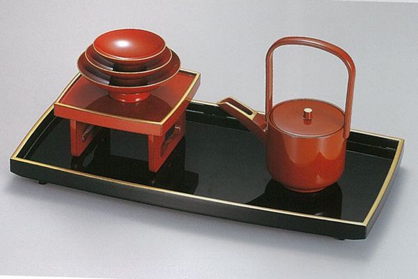 越前漆器4111-3 屠蘇器セット 日の出胴張屠蘇台付き 木箱入り