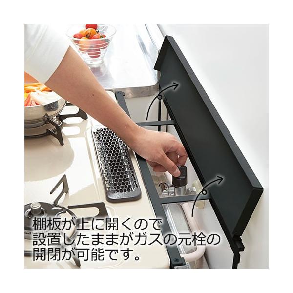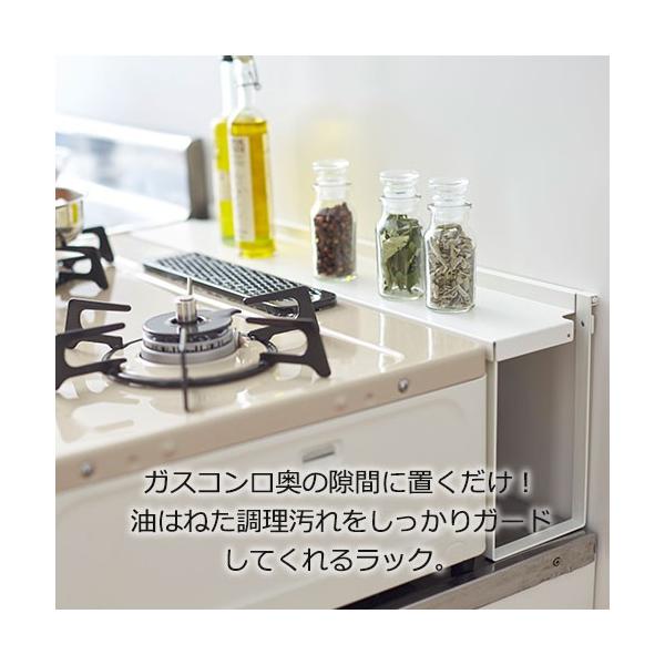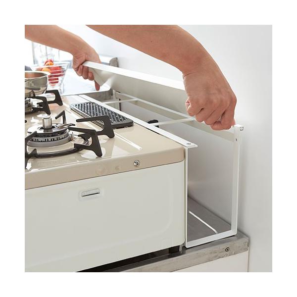 ガスコンロ奥の隙間に置くだけ!油はねや調理汚れをしっかりガードしてくれるラックです。