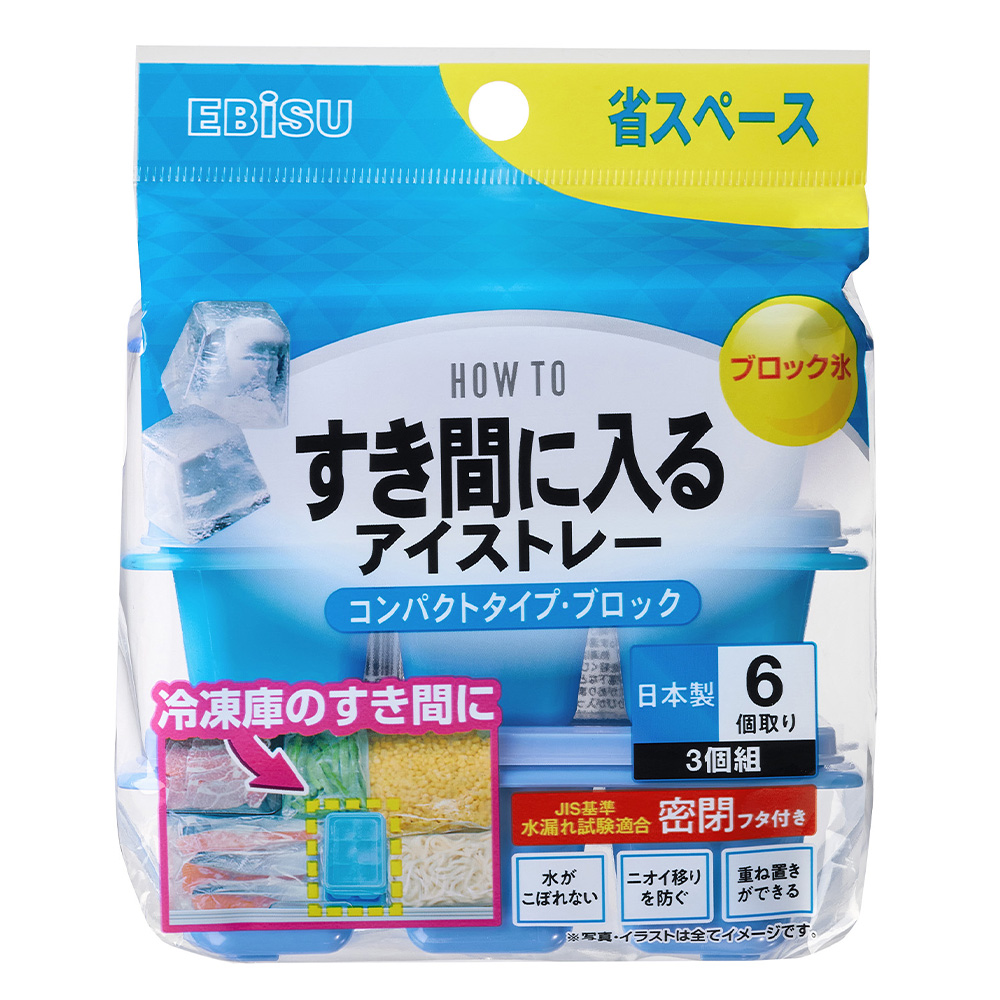 エビス すき間に入るアイストレー コンパクトタイプ・ブロック PH-F85 3個組 製氷皿 製氷器 冷凍 水筒 密閉フタ