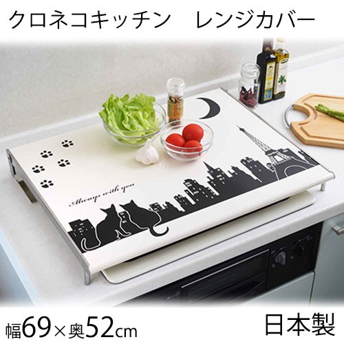 コンロカバー 日本製 クロネコ キッチン レンジカバー 返品不可