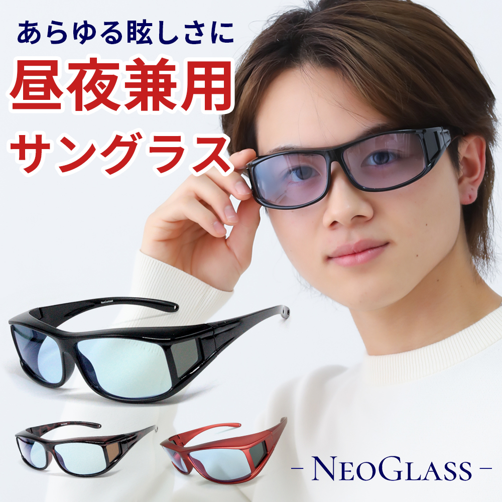 ネオコントラスト SC10 夜間 運転 サングラス メンズ レディース オーバーグラス うすい色 メガネの上から uvカット めがね 雨天 ネオグラス