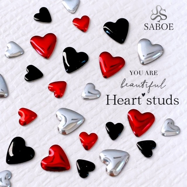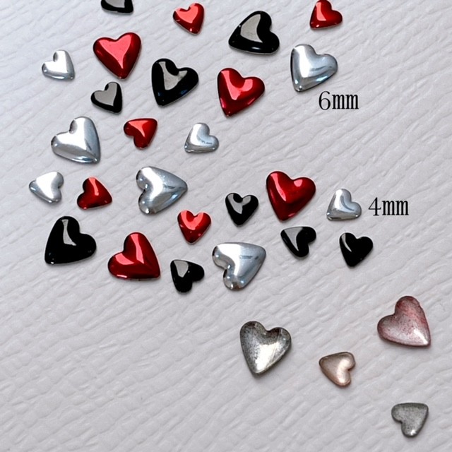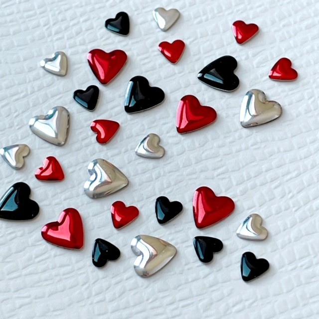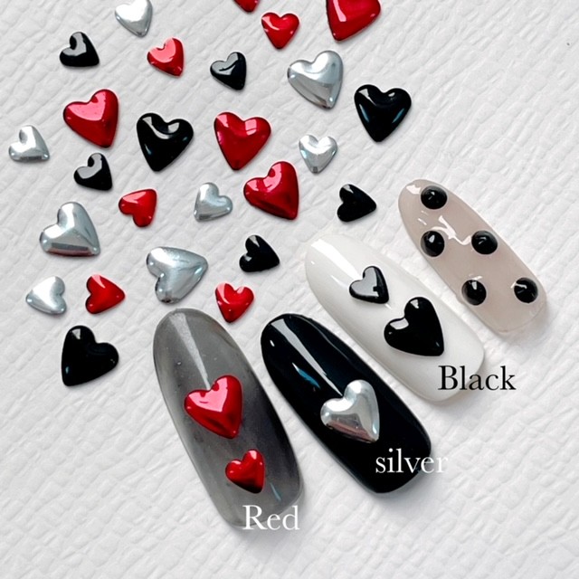ネイルパーツ【10個】ハート スタッズ メタルパーツ ぷっくりハート 赤 黒 シルバー heart ハンドメイド デコ レジン材料 6mm 4mm ネイルアクセント SABOE