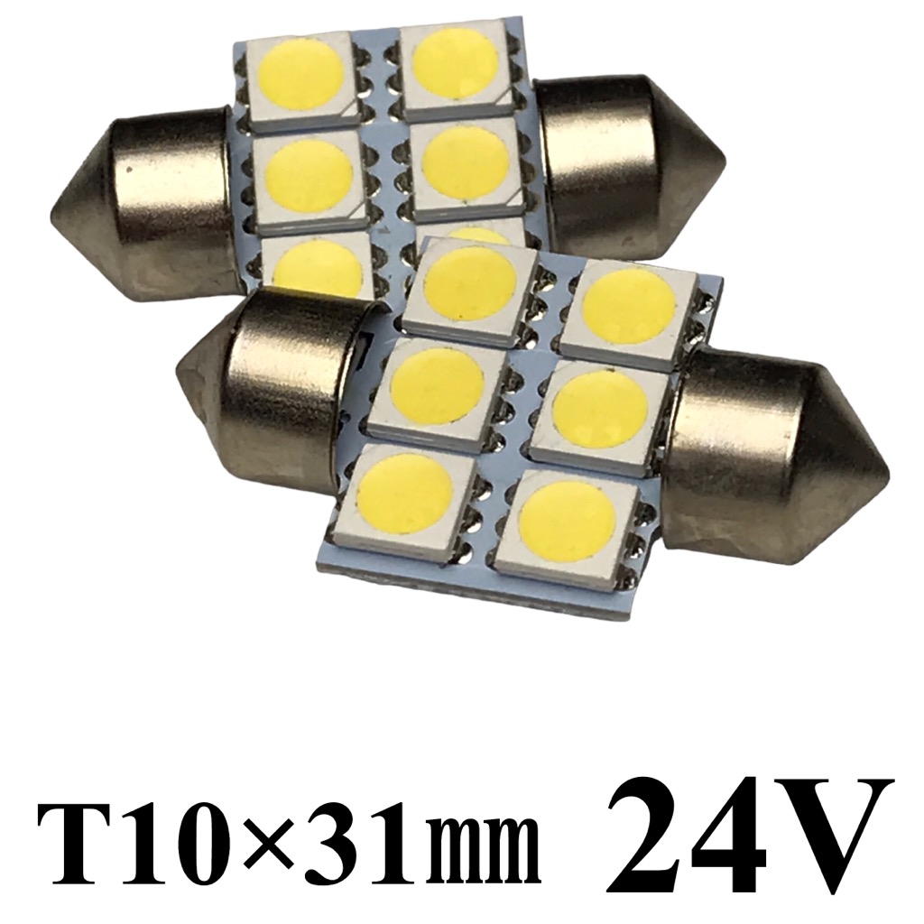 24V 6連 フェストン球 まくら球 ルームランプ マップランプ LED電球 ホワイト 3チップ5050SMD 2個セット T10×31ミリ
