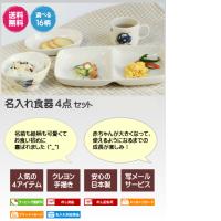 この食器セットは、人気アイテム4点(長角とだ円のお皿、茶碗、コップ、だ円皿)のネーム入りギフトセットです。