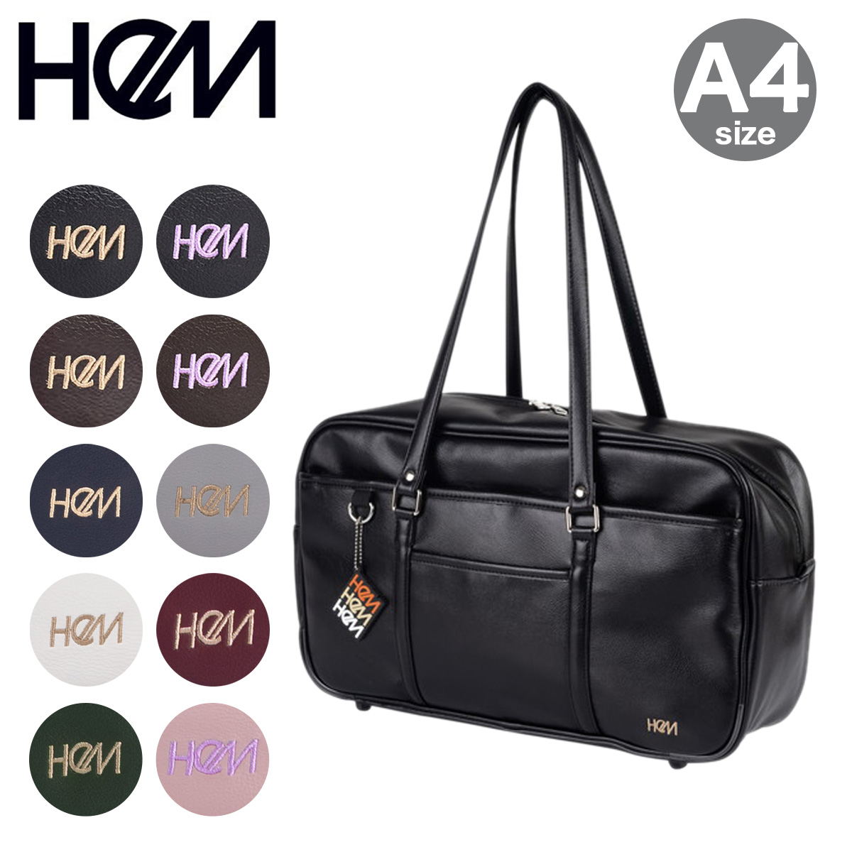 ボトルホルダーとPCポケットを備えた充実した内装と、可動式底板が付いた機能性抜群のスクールバッグ。持ち手が長いので肩へ掛けやすいのも◎。HeMのロゴチャーム付。