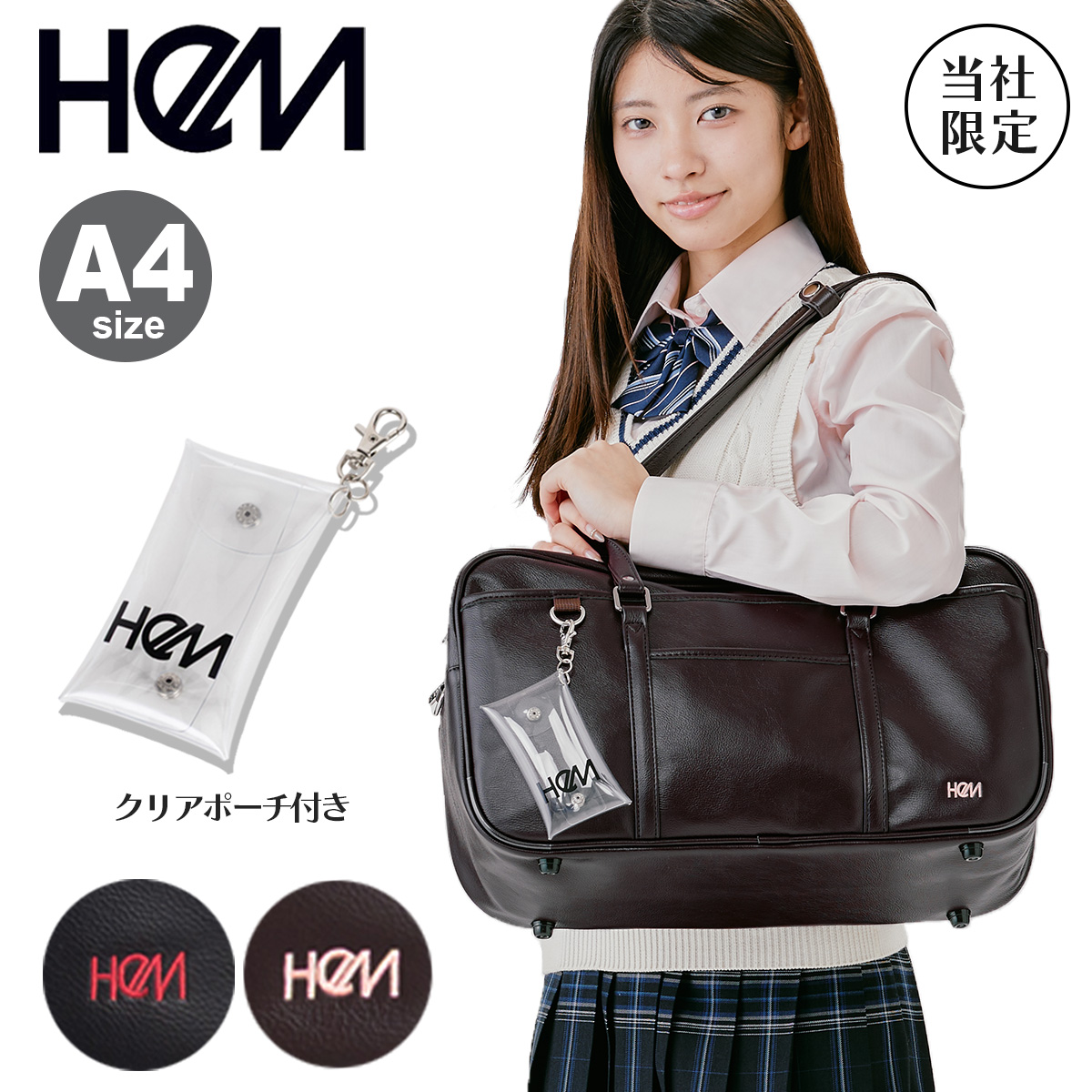 STモデルの「松本麗世」さんと「竹下優名」さんのアイデアをもとに、こだわりを詰め込んだスクールバッグ。内装のドリンクホルダーは巾着型仕様で、従来以上に水筒やペットボトルを収納し易くなりました。肩に掛けやすいちょっぴり長めの肩ヒモは、スナップボタンでスッキリまとめることが可能です。さらに、刺繍の色もそれぞれモデルこだわりのカラーをチョイス!オリジナルのスクエアクリアポーチ付です。