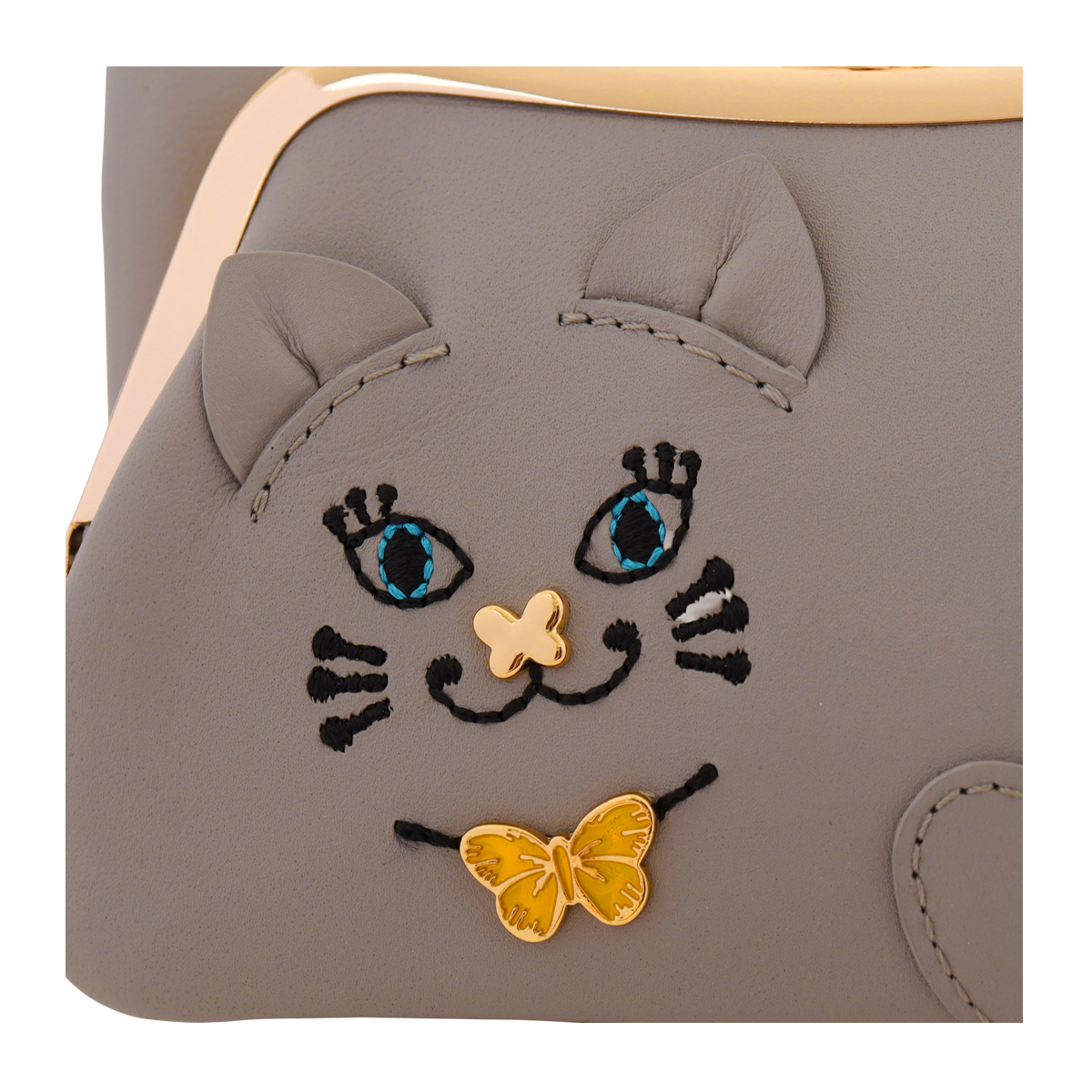 ふわっと柔らかなソフトレザーで仕立てられたシリーズ「TITIソフト」。猫の顔を大胆にレイアウトしたデザインに、さりげなく施された蝶のモチーフがアクセントとなり、見るたびに心が和むデザインです。ぷっくりとした立体刺繍と控えめなツヤ感が特徴のソフトレザーが手に心地よくなじみ、日常使いにぴったり。フロントからひょっこり覗くティティのしっぽや耳の立体感も遊び心たっぷりで、毎日の気分を上げてくれます。コンパクトでバッグに入れやすく、収納力と機能性も備えているため、デイリー使いはもちろんギフトにもおすすめです。