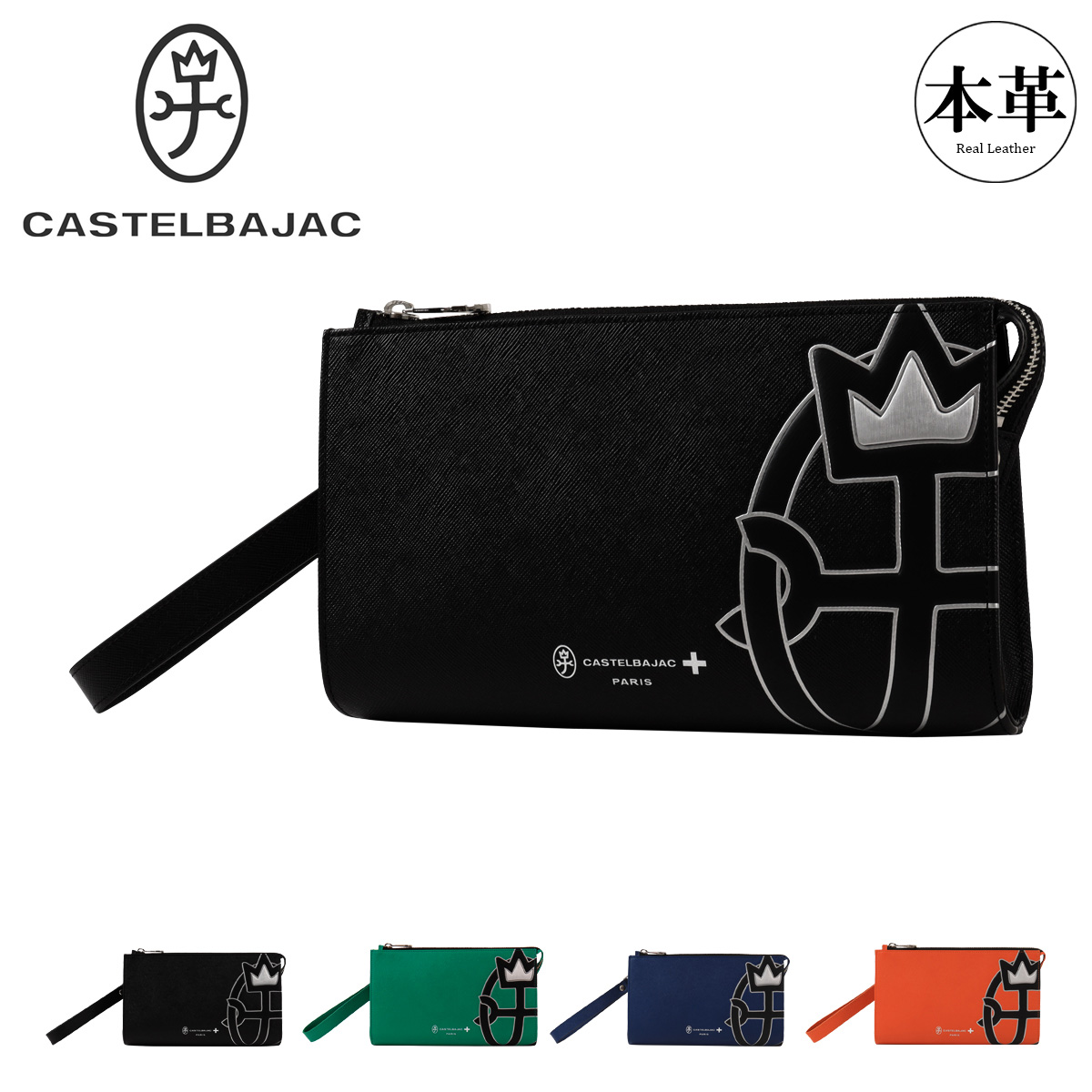 枠からはみ出たようなブランド家紋デザインが特徴の、カステルバジャックのカジュアルなクラッチバッグ。ブランド家紋の王冠部分がシルバーになっており、目を引くアクセントとなっています。さらに、丸底デザインにより持ちやすく、縁は切り目とヘリ返しを施しているため、形が崩れにくく長くお使いいただける造りになっています。