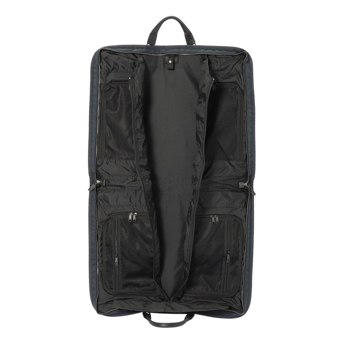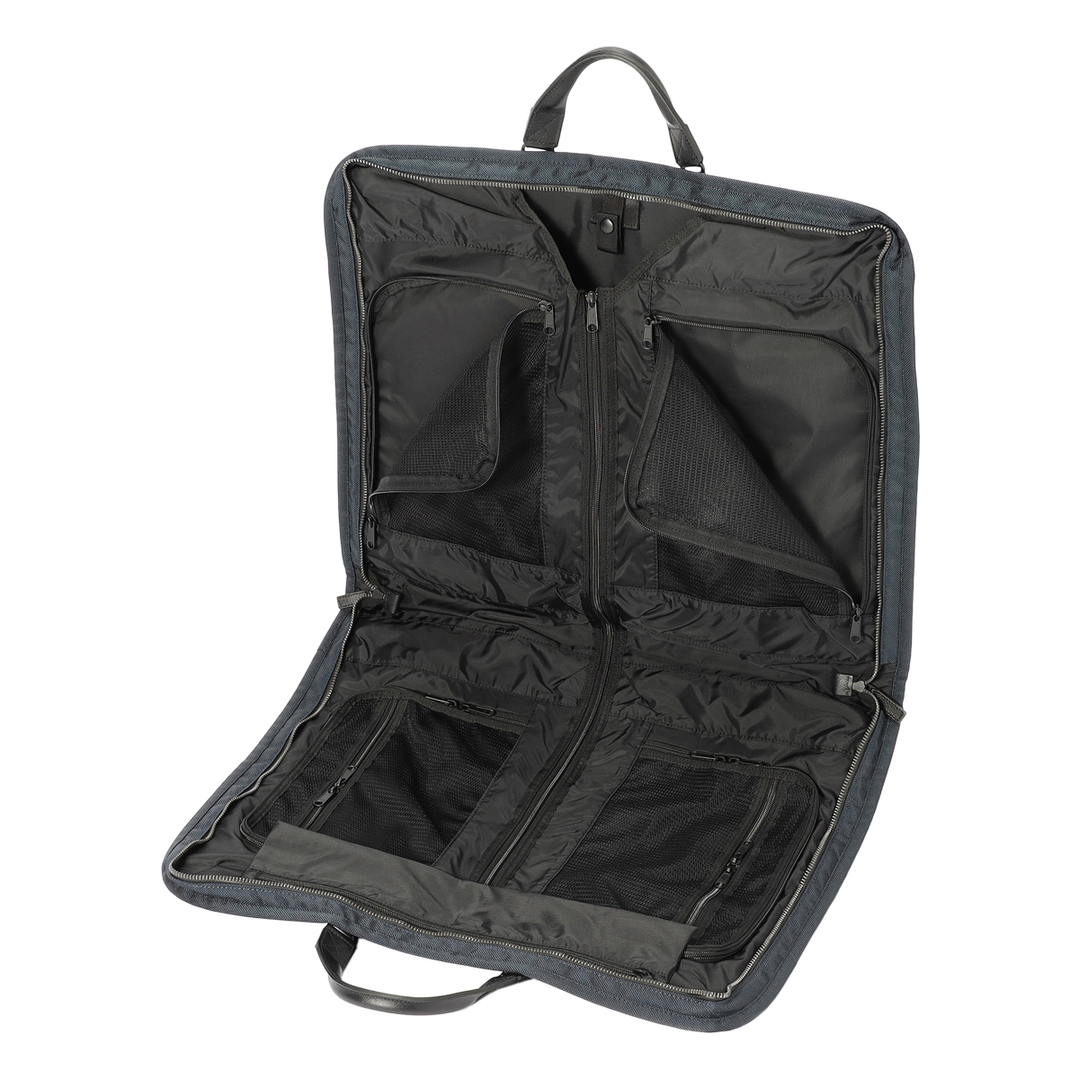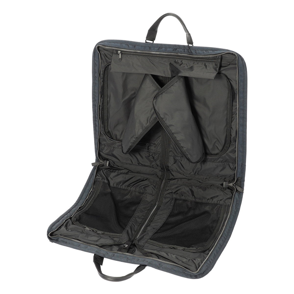 ビジネスシーンでの使用や冠婚葬祭などで長距離移動を伴う際などにキャリーオンをして使用できるガーメントケース。スーツをハンガーにつるした状態で収納できるのはもちろん、内外にポケットを多数設けシャツやネクタイなどの付属アイテムも仕分けしながら収納することが可能。FUSIONコレクションならではの端正でシックなルックスも魅力のアイテムです。