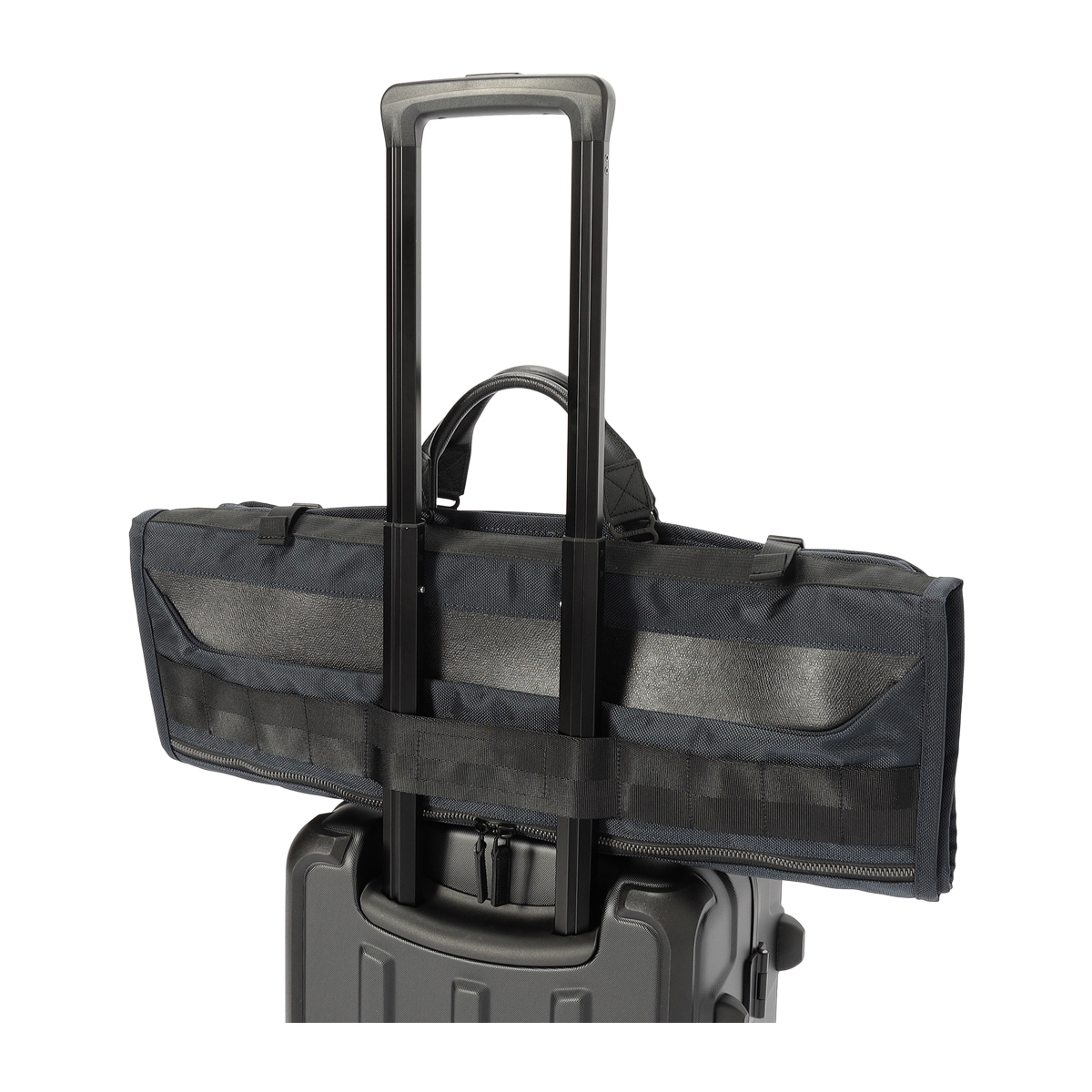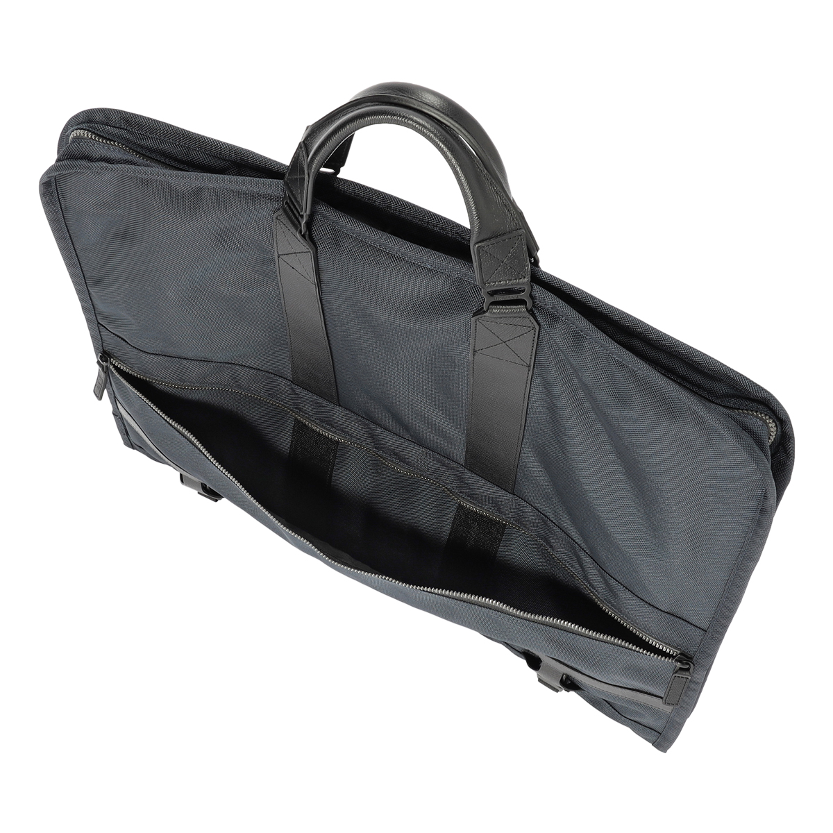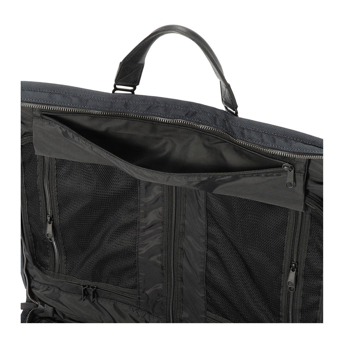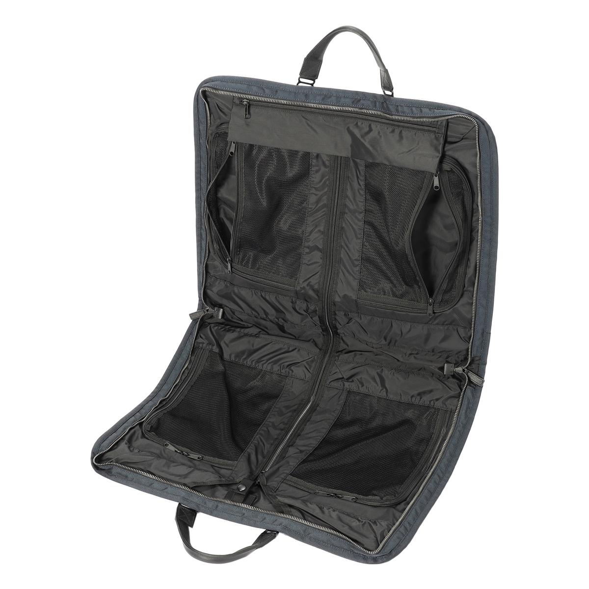 ビジネスシーンでの使用や冠婚葬祭などで長距離移動を伴う際などにキャリーオンをして使用できるガーメントケース。スーツをハンガーにつるした状態で収納できるのはもちろん、内外にポケットを多数設けシャツやネクタイなどの付属アイテムも仕分けしながら収納することが可能。FUSIONコレクションならではの端正でシックなルックスも魅力のアイテムです。