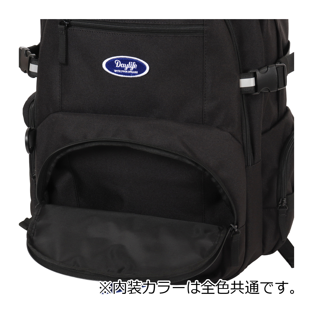 毎年大人気のDAYLIFEの『ALL DAY BACKPACK』です。お気にりのアイテムを入れて自分らしさをアピールできるクリアポケットで、他にはない一つだけのバッグの完成。フロントのロゴはお好みのカラーをチョイスしてさりげなくアピールできます。DAYLIFEの人気リュックで毎日の通学を盛り上げます。
