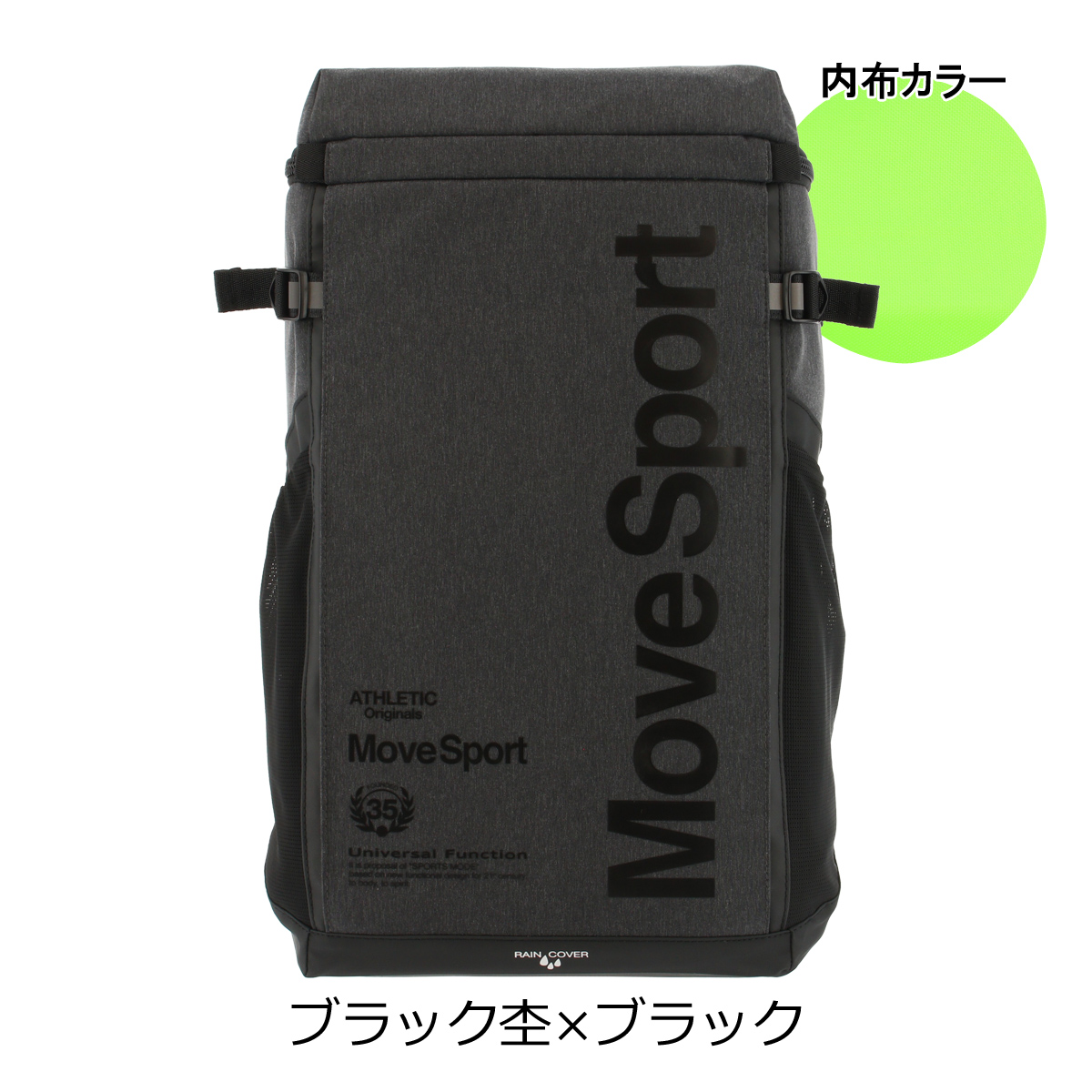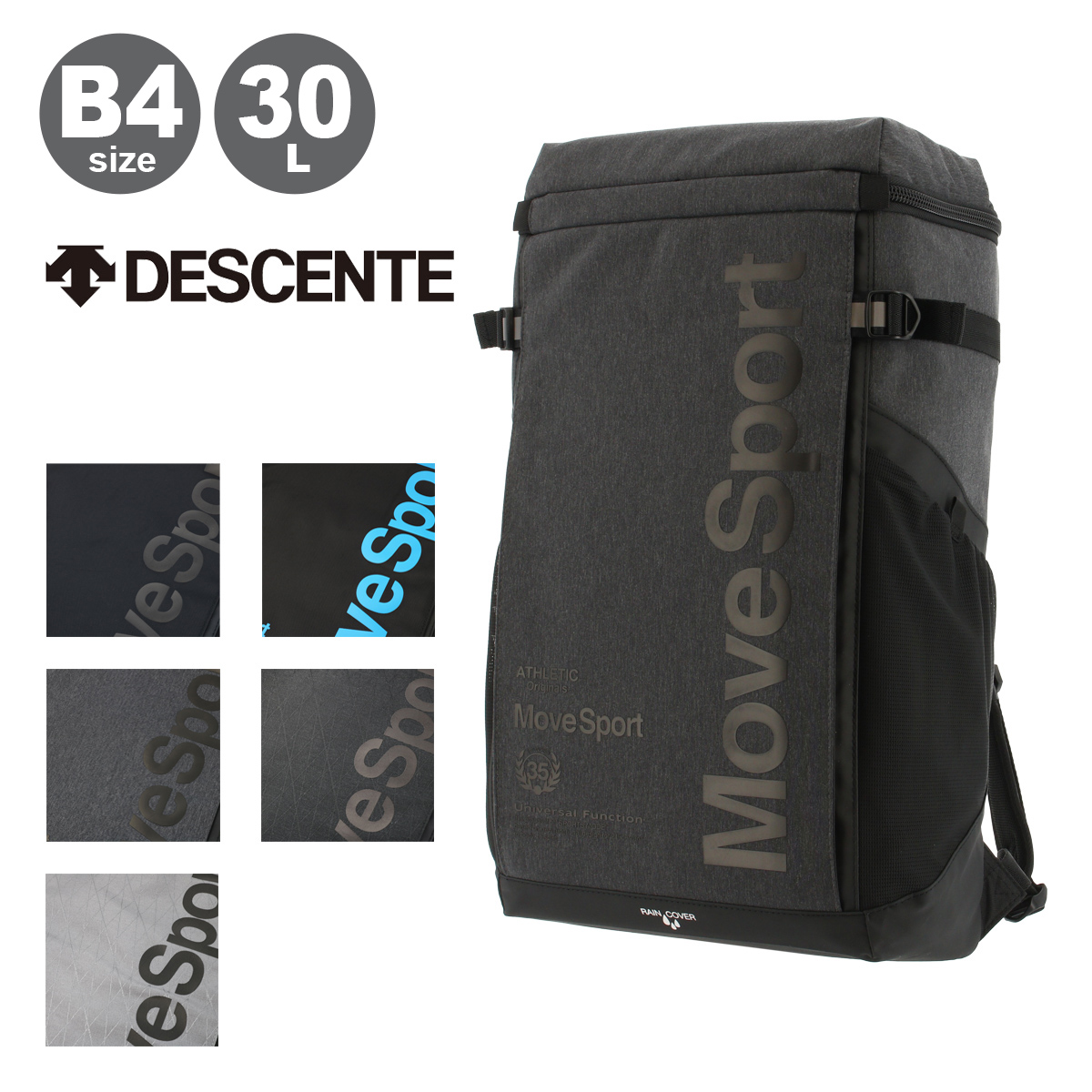 容量約30Lのスクエア型のバックパック。裏地にフラッシュカラーを使用したスポーティなデザインで、機能ファスナーポケットやPCポケットなど、内側の構造が充実。通学や通勤時の突然の雨などをしのげる収納式レインカバーを装備。ショルダー構造をよりフィットする形状に。