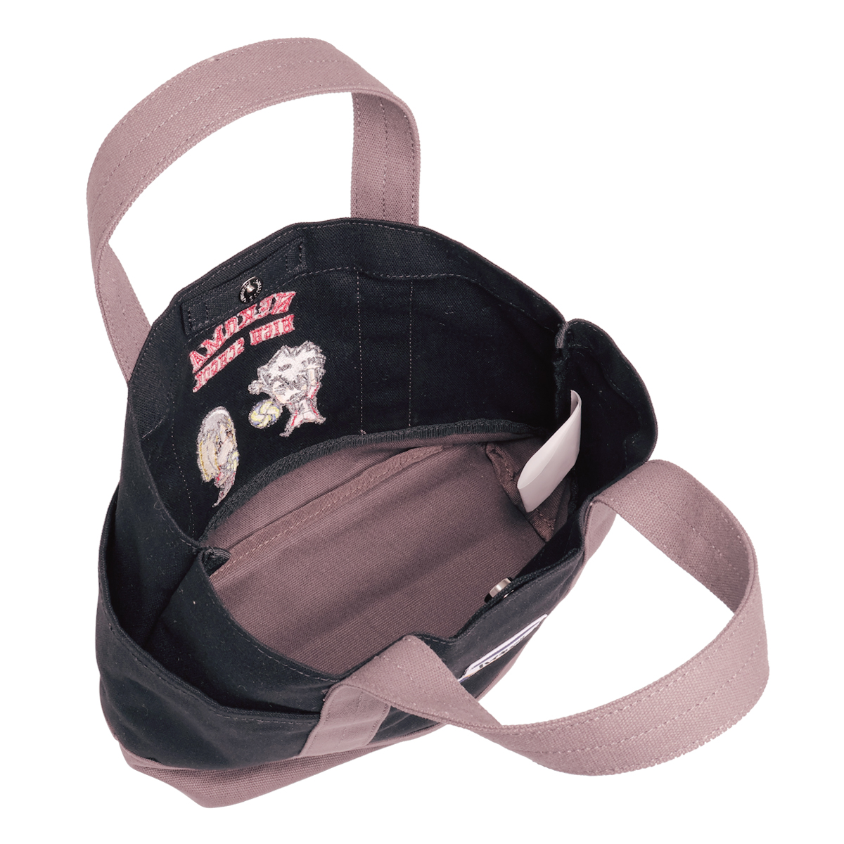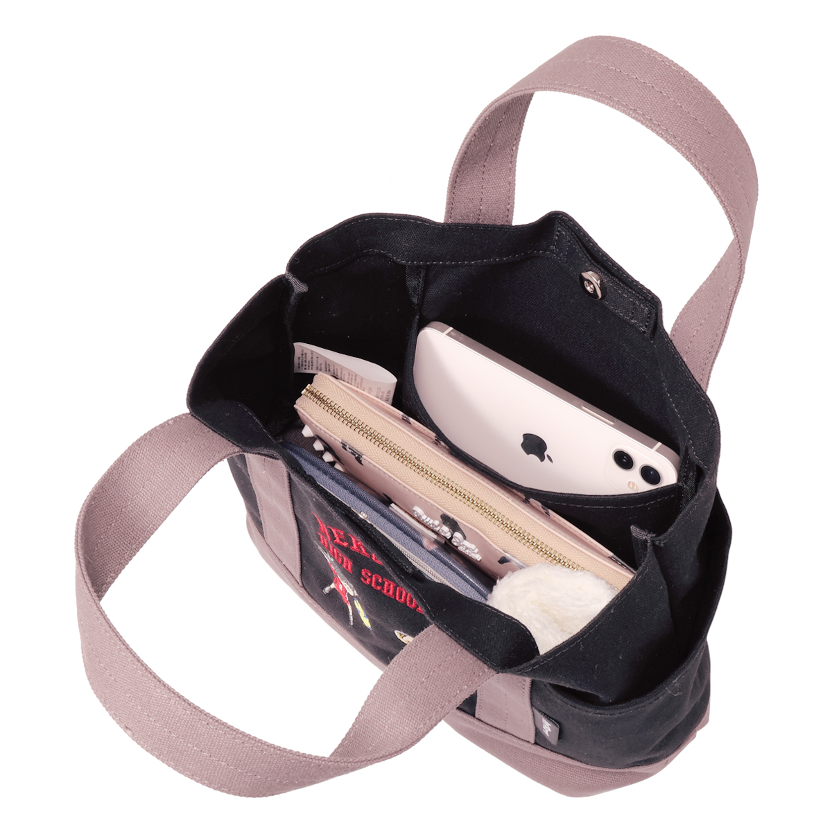 ミニキャラクターを刺繍で表現したデザインのミニトート