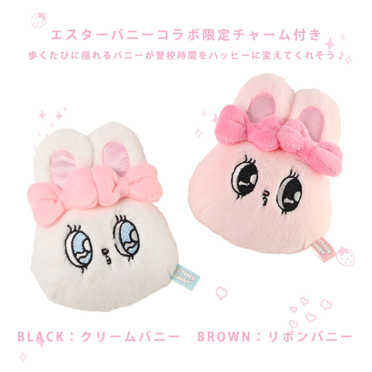 ブラックにはクリームバニー(白色)、ブラウンにはリボンバニー(ピンク色)が付属しています。