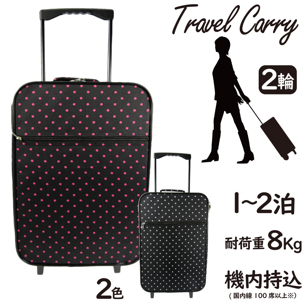 かわいいドット柄の折り畳みキャリーケースです。