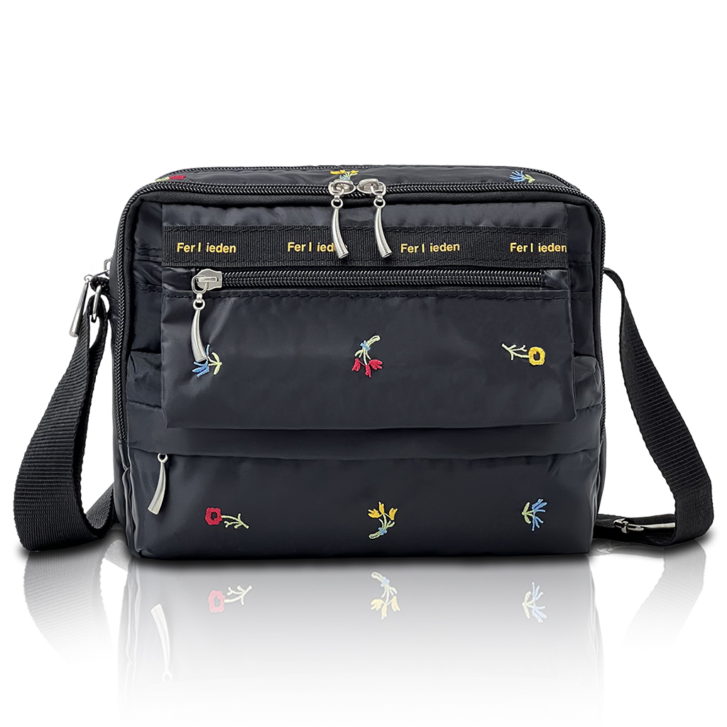 花刺繍ショルダーバッグ 4792 [Ferlieden フェアリーデン] ボンディング素材 軽量 収納力抜群 かわいい
