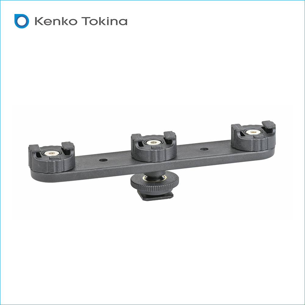カメラのホットシュー(アクセサリーシュー)部分に取り付けて、最大3つまでの機材の取付を可能とするシューアダプターです。
