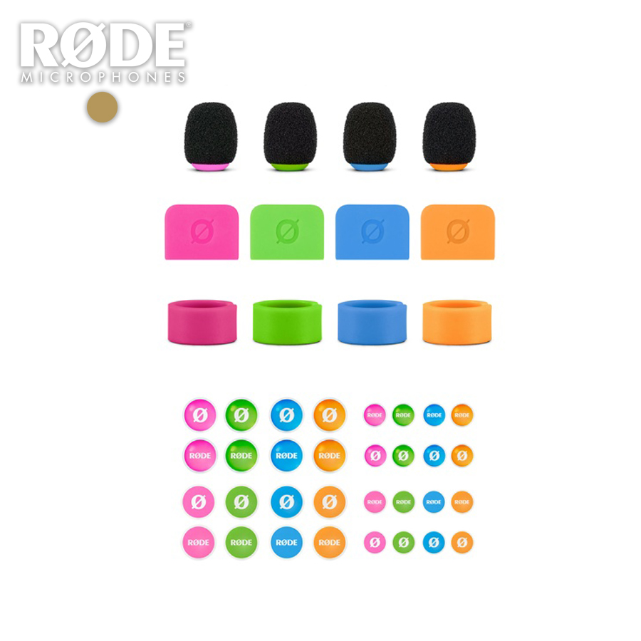 ラベリアマイク用ウインドシールドと3.5mmミニジャックリング、ワイヤレスゴーII・ワイヤレスゴー用の送信機タグ、ステッカーシートを、それぞれピンク、グリーン、ブルー、オレンジの4 色でご用意しています。