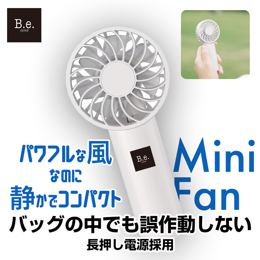 B.e. 軽量コンパクトハンディファン MINI FAN ホワイト 静音設計 パワフル風量 携帯扇風機 ポータブルファン 静音 強力風量 USB充電 夏用