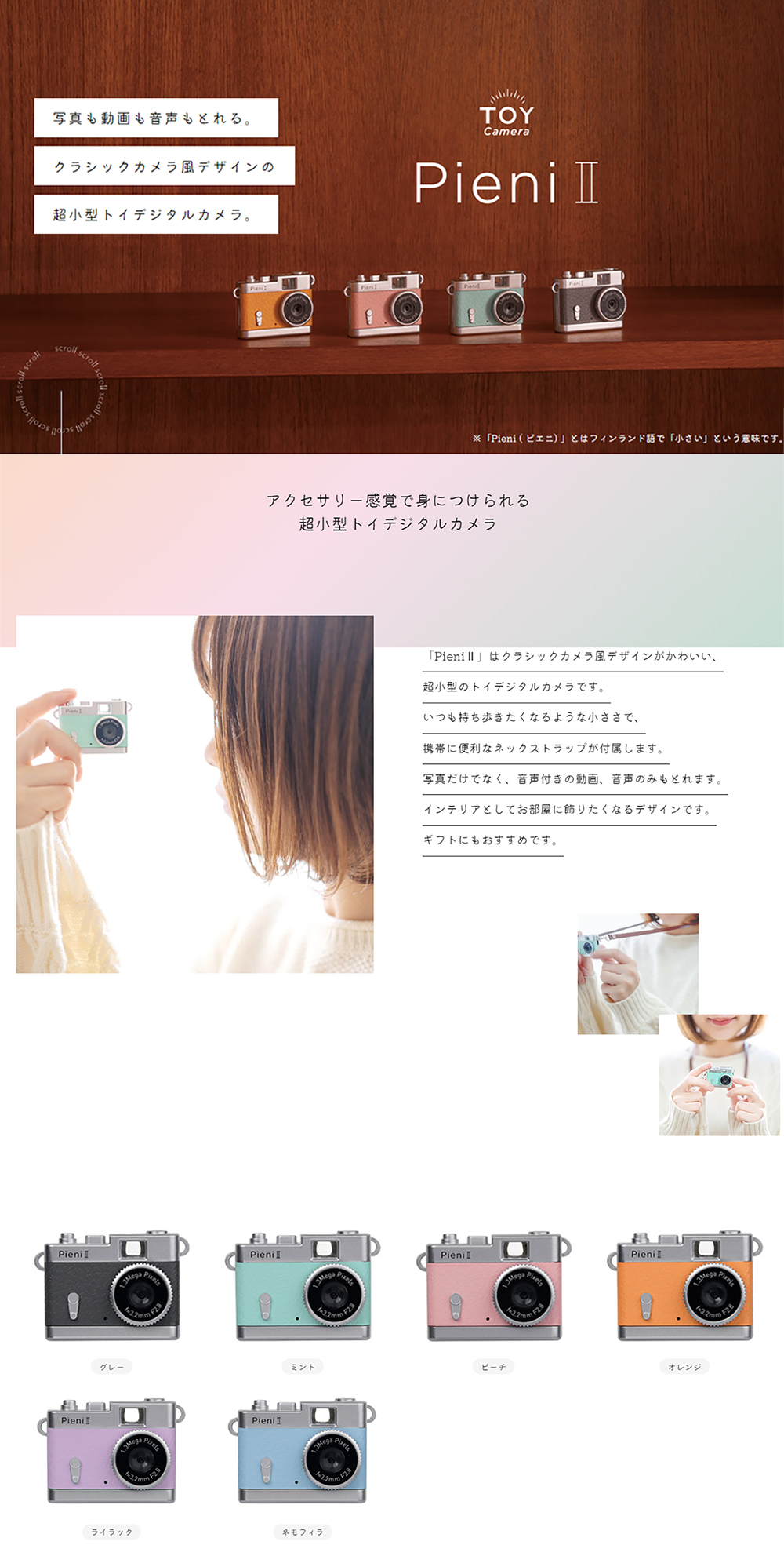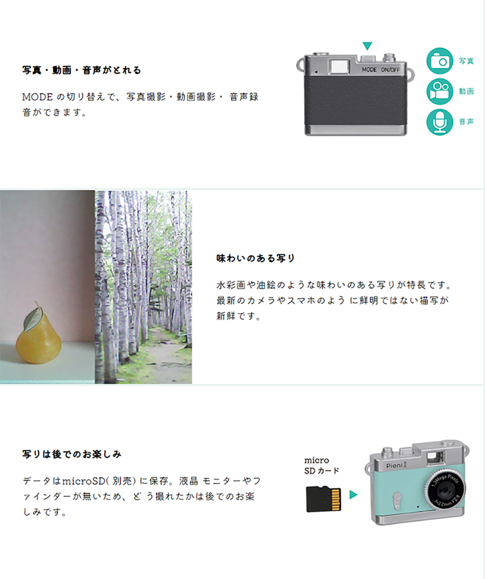 「Pieni II」はクラシックカメラ風デザインがかわいい、超小型のトイデジタルカメラ。