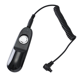 外装は衝撃に強いポリカーボネート製で、表面はピアノブラックの仕上げ。測光・AF時に使用するレリーズ半押し、長時間露光用のレリーズロックなどの基本的な機能を備えます。