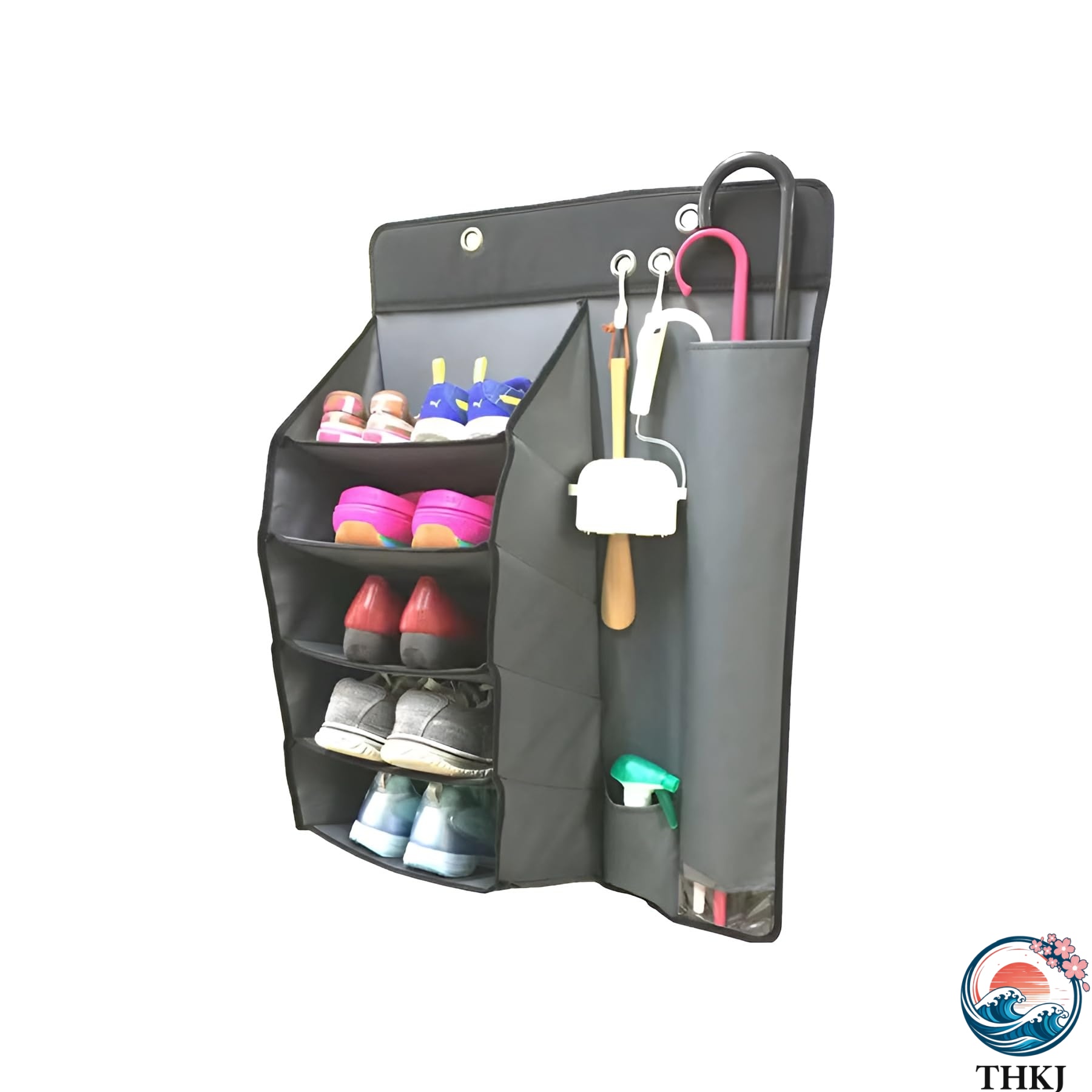 車用マルチシューズラック 傘入れ 車中泊用品 5段折りたたみ THKJ 靴入れ カーシューズラック 5段 車用収納ラック靴入れ 傘立て 傘ホルダー 小物収納グッズ