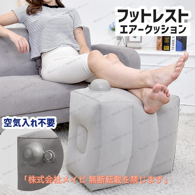 フットレスト 足置き 足乗せ台 足枕 エアークッション 空気入れ不要 ポンプ不要 手押し 収納袋付き 旅行用品 トラベルグッズ 携帯 持ち運び 飛行機