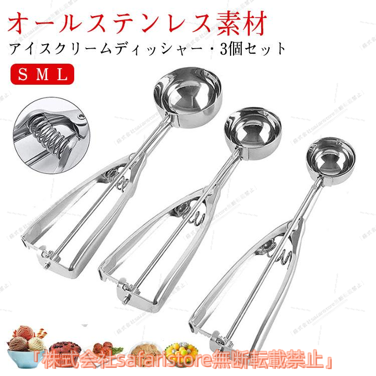 アイスクリームディッシャー 3個セット S M L ステンレス アイスクリームスプーン アイススクープ 業務用 飲食店 スプーン 小さい 料理用 キッ