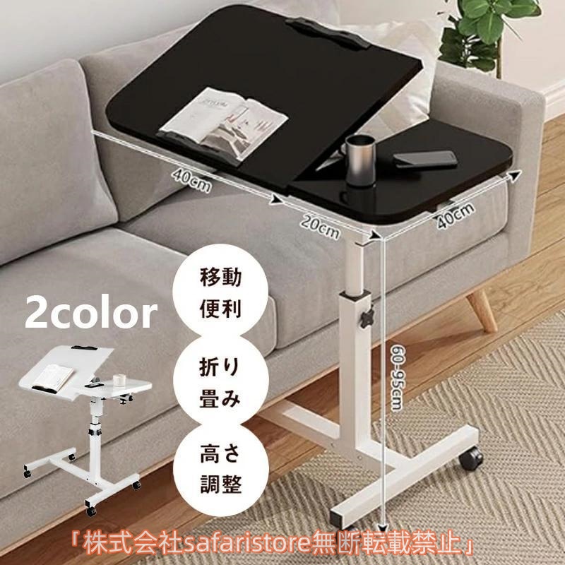サイドテーブル 昇降式 パソコンデスク 高さ60-95cm キャスター付き 幅60 角度調整 無段階高さ調節 オフィス 移動式 勉強机 仕事 ベッドテーブル 介護用テーブル