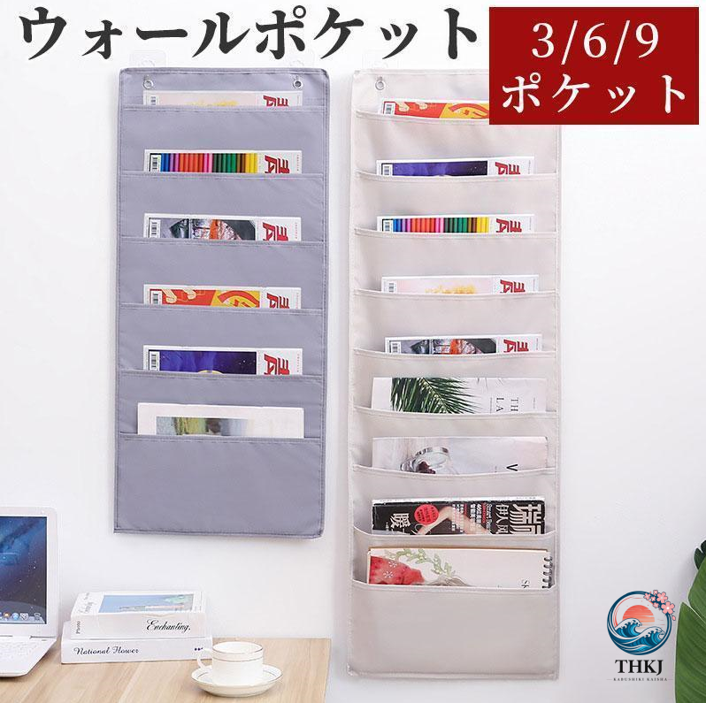 壁掛けポケット ウォールポケット 吊下げタイプ /3/6/9ポケット 書類収納 A4 布製 ドアハンガーポケット 壁掛け収納 吊り下げ-THKJ