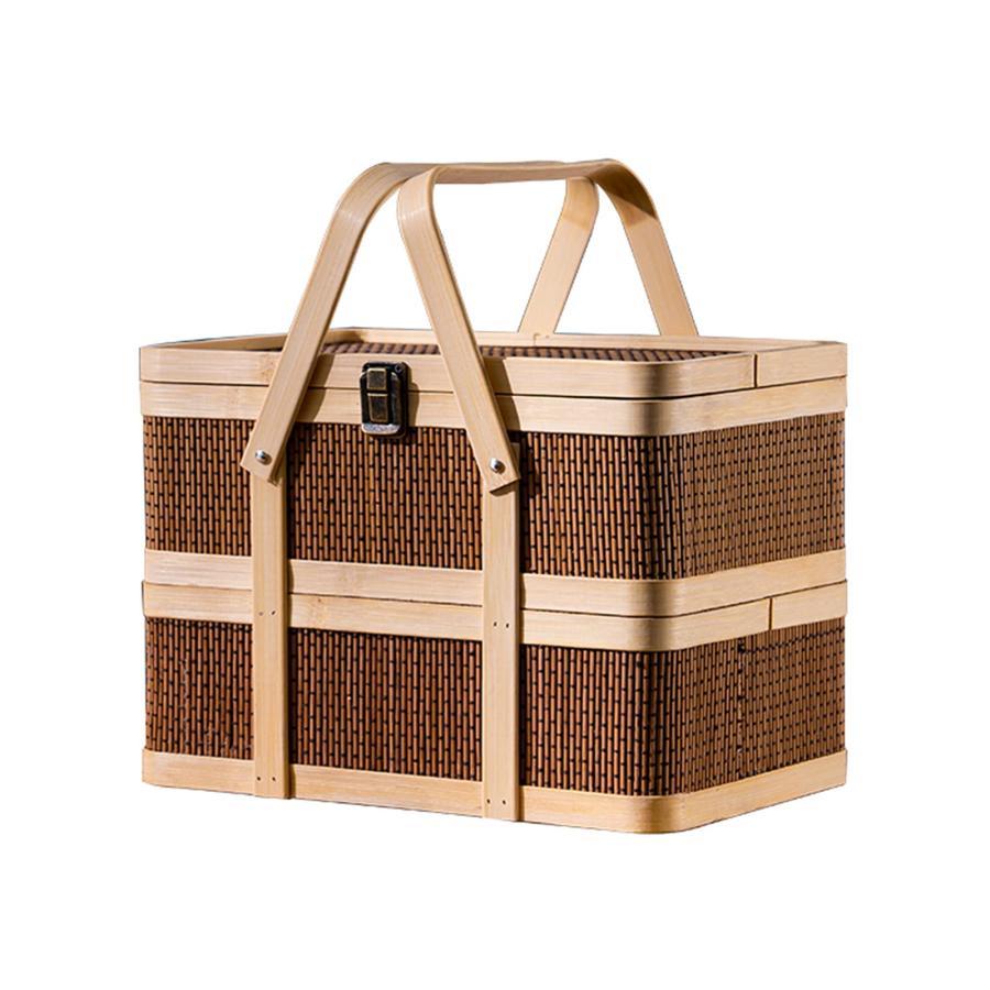 ポータブルピクニック竹かご スナック、パン、フルーツ、2層ホリデーギフトボックス