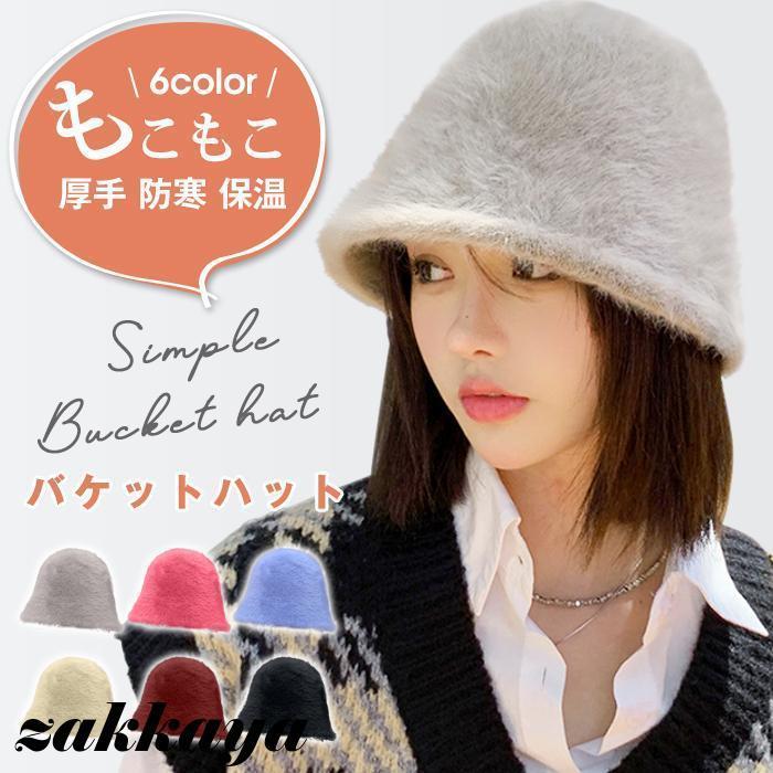 バケットハット ファー帽子 レディース ハット ふわふわ あったか 厚手 もこもこ 防寒 保温 小顔効果 無地
