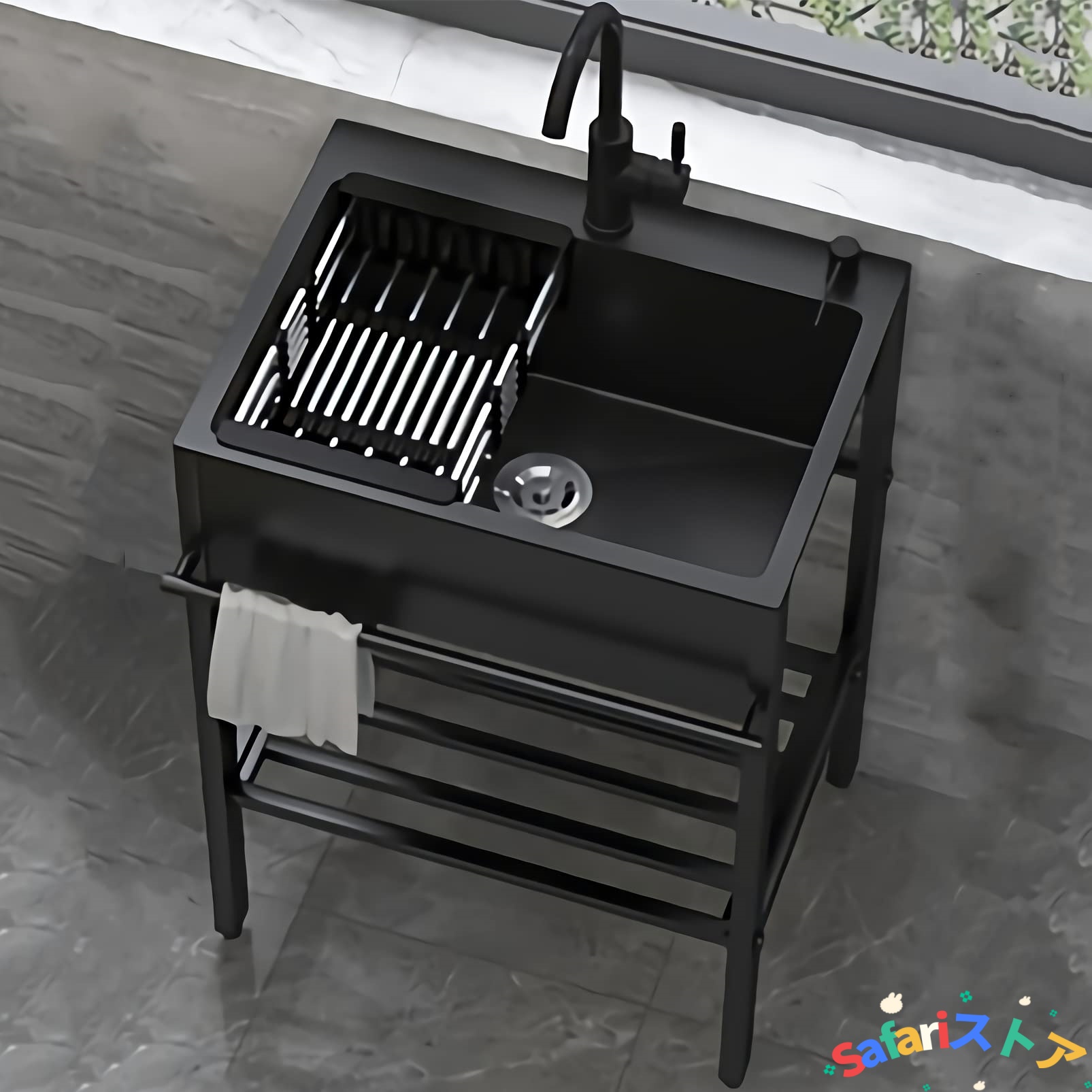 業務用 シンク 1槽式 フリースタンディングステンレスユーティリティシンクランドリーシンク 流し台 ステンレス製 フリースタンディングブラックキッチンシンク