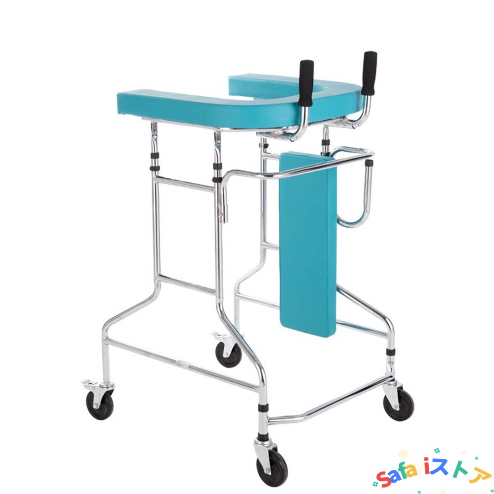 ゆったりとした、安定感ある歩行器です。後ろの車輪は、ブレーキをかける、いつでも駐車できます。クッション性がある大きな座面。足が不便な患者や運動不足の高齢者に適しています。移動や立ち上がりを強力サポ-ト。
